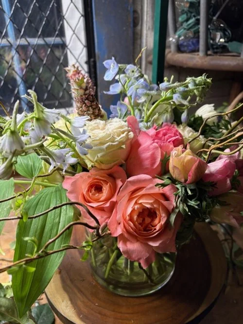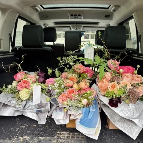 and loving every minute of it. I even like waking in the wee hours to view the day’s first pick when the New England Flower Exchange in Chelsea opens at 5 a.m. Ok, I must admit, snipping dahlias that have taken all summer to grow can be bittersweet, but the “work” is mostly joyful. I love choosing the perfect ranunculus for prom boutonnières, selecting silk ribbon for nosegays, and combining marketplace roses with field-grown wildflowers for birthdays, anniversaries, bridal brunches, “get well” and “just because” bouquets. Please spread the word.