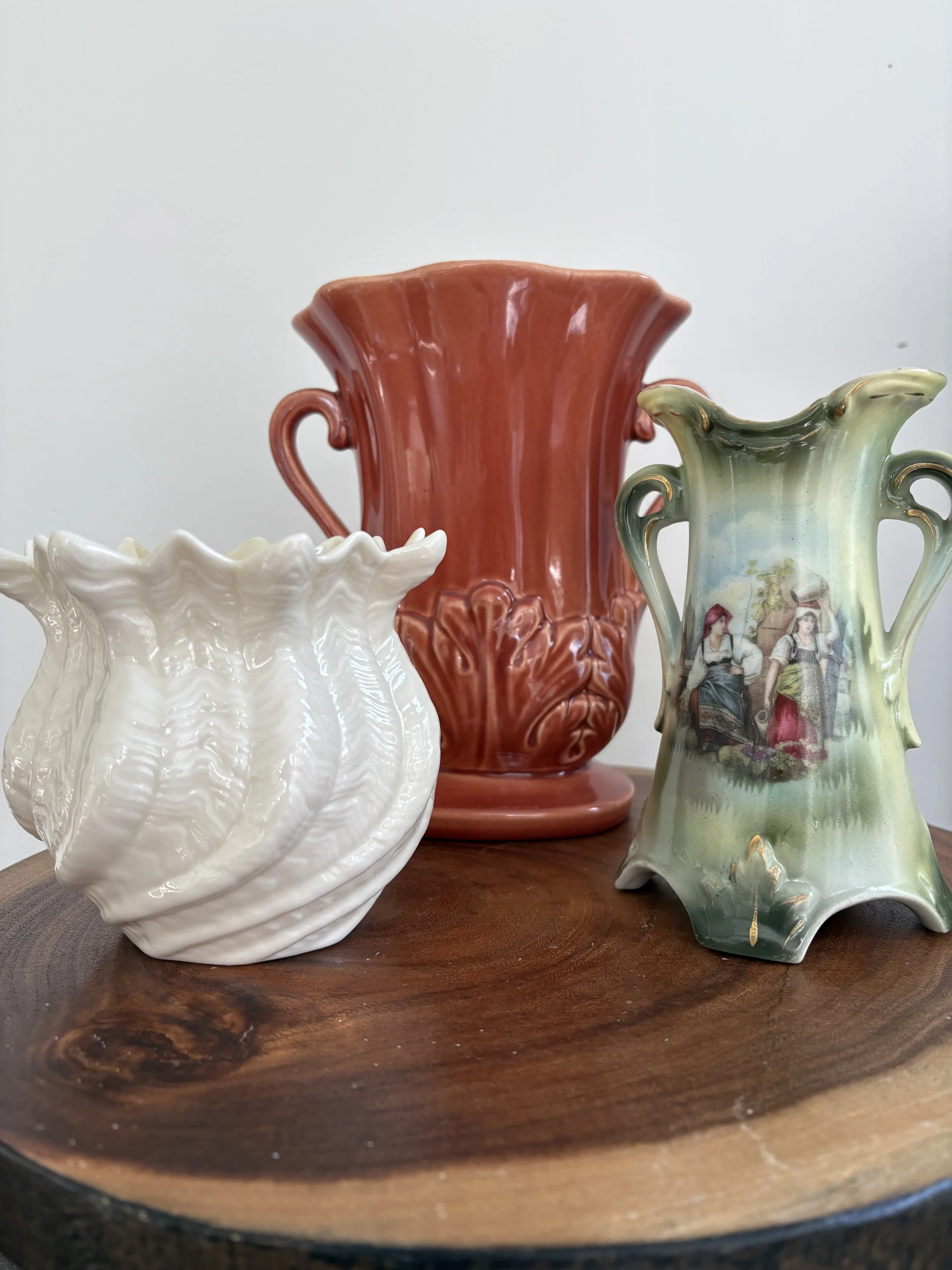 I love hunting for vases at second-hand stores. My latest thrift store finds (below) were discovered at Buy and Consign in Waltham (directly across from Market Basket entrance) and at Restoration Project Thrift Store in Belmont.